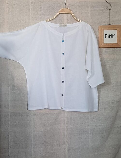 Áo trắng linen mỏng mềm tay cánh dơi thoải mái với hàng nút trang trí nhiều màu tạo sự trẻ trung vui tươi. Bạn có thể phối với chân váy hoặc quần tạo nét thanh lịch nhẹ nhàng để đi làm , đi học hoặc đi chơi.