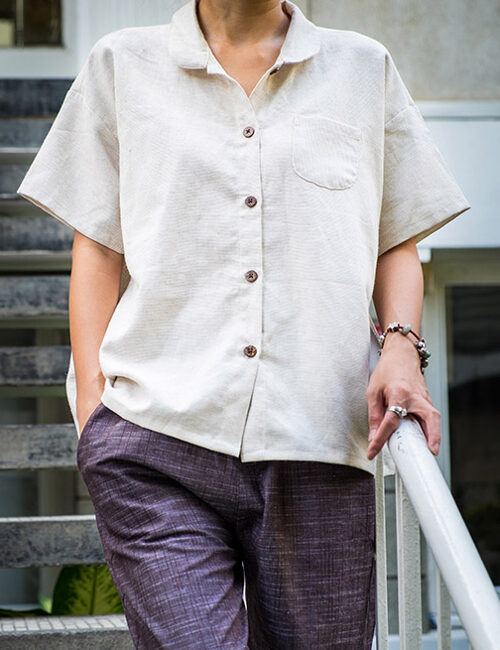 Áo Lotus 0.1 Thiết Kế Vải Linen Xuất Khẩu Gam Kem Sợi Gân Tay Ngắn Fimm Handmade Dài áo 62cm, Ngực 112cm, Hông 112cm "phù hợp với các bạn có vòng ngực dưới 105cm" Mô tả: Áo chất liệu linen đẹp, áo có cổ và tay áo áo ngắn, nút gỗ. Form áo hiện đại, phong cách thanh lịch và cá tính hù hợp cho các bạn đi học, đi làm và đi chơi, có thể phối với quần và chân váy siêu cá tính. Thiết kế limited nhé