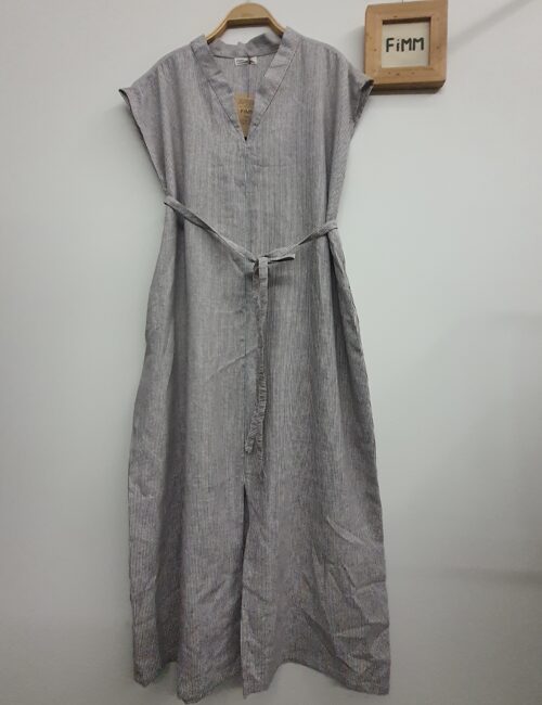 Đầm Cổ V Có Ve Sợi Xám