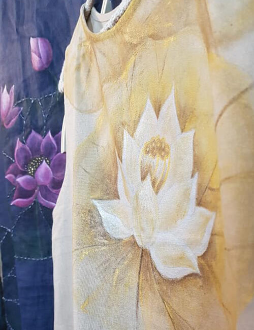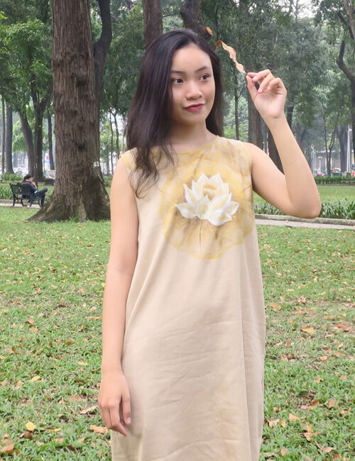 Đầm kem vẽ sen