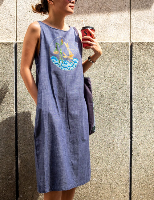 ĐẦM KHÔNG TAY LINEN MÀU XANH NHẠT HỌA TIẾT CHUỒNG CHUỒNG SEN THƠM*tạm hết*