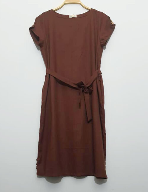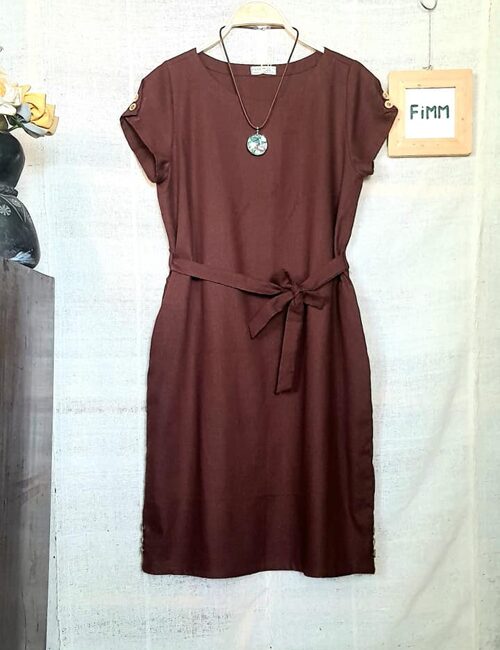 ĐẦM LINEN THIẾT KẾ CÓ TAY NÂU FIMM
