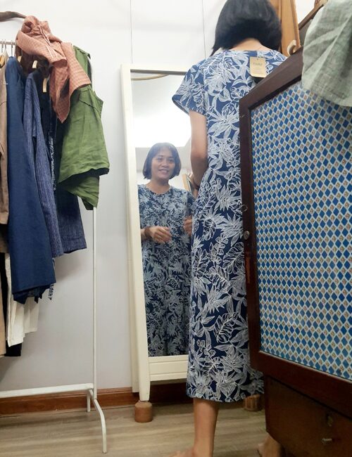 ĐẦM LINEN THIẾT KẾ CÓ TAY XANH HOA
