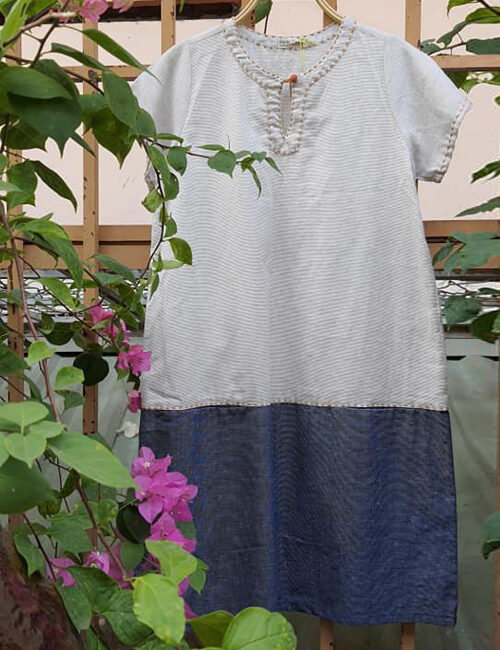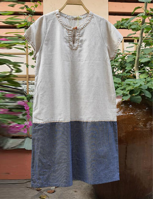 ĐẦM LINEN THIẾT KẾ GHÉP VẢ CÓ TAY FORM NHỎ FIMM