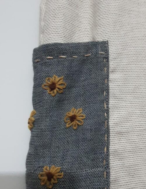 ĐẦM LINEN THIẾT KẾ GHÉP VẢI THÊU HOA CÚC 2 TÚI - CÓ TAY FIMM