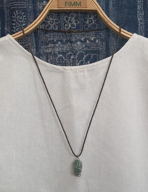 Mô tả: Dây Chuyền Đeo Cổ Đá Thô Xanh Năng Lượng Xanh Cây Quấn Kẽm Nhật Fimm Handmade Đá tự.nhiên có hình dạng khác nhau nên quí khách có thể nhận được mặt dây có hình dáng ngẫu nhiên độc bản. Dây màu nâu dễ phối đồ hợp với cả nam và nữ