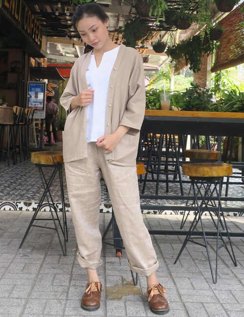 Long No 0.2 Quần Dài Linen Gân Kem 2 Size M, L Lưng Thấp Ngang Rốn Size L :Dài quần 86cm, vòng đùi 64cm "hợp với các bạn có vòng đùi dưới 58cm, lưng thun ngang rốn, Size M :Dài quần 83cm, vòng đùi 58cm "hợp với các bạn có vòng đùi dưới 53cm, lưng thun ngang rốn Mô tả: Quần dài có lưng thun chạy vòng đều quanh lưng, vòng lưng thấp ngang rốn,, thiết kế limited chất linen mát mẽ, form gọn phù hợp đi du lịch hoặc đi làm
