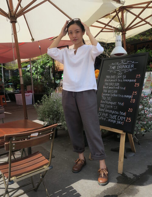 Áo Rosy V 0.1 Thiết Kế Vải Linen Màu Trắng Kem Có Tay Fimm Handmade Ngực 100cm, Dài áo 58cm, phù hợp với các bạn có vòng ngực dưới 95cm Áo chất liệu linen đẹp, áo có cổ V và tay áo dài vừa Quần Long No 0.1 Quần Dài Linen Bố Màu Rêu 2 Size M, L Quần linen bố màu rêu dày vừa có 2 loại còn 2 quần nên sẽ được giao ngẫu nhiên nhé, A - dây cột bằng vải lưng thấp ngang rốn lưng rộng hoặc, B - quần dây rút lưng vưng cao trên rốn lưng nhỏ vừa TRONG TRƯỜNG HỢP KHÁCH KHÔNG CÓ YÊU CẦU THÌ SHOP SẼ CHUYỂN 1 TRONG 2 ÁO QUẦN PHỐI TRÊN Bạn NHÉ Set thiết kế gam mộc, phong cách thanh lịch và cá tính phù hợp cho các bạn đi học, đi làm và đi chơi, có thể phối với quần các loại và chân váy siêu cá tính. Thiết kế limited nhé