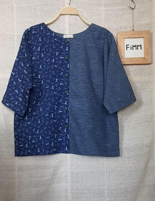 Áo Oka N0.1 Thiết Kế Cổ Tròn Linen Xanh Phối Hoạ Tiết Chuồn Chuồn